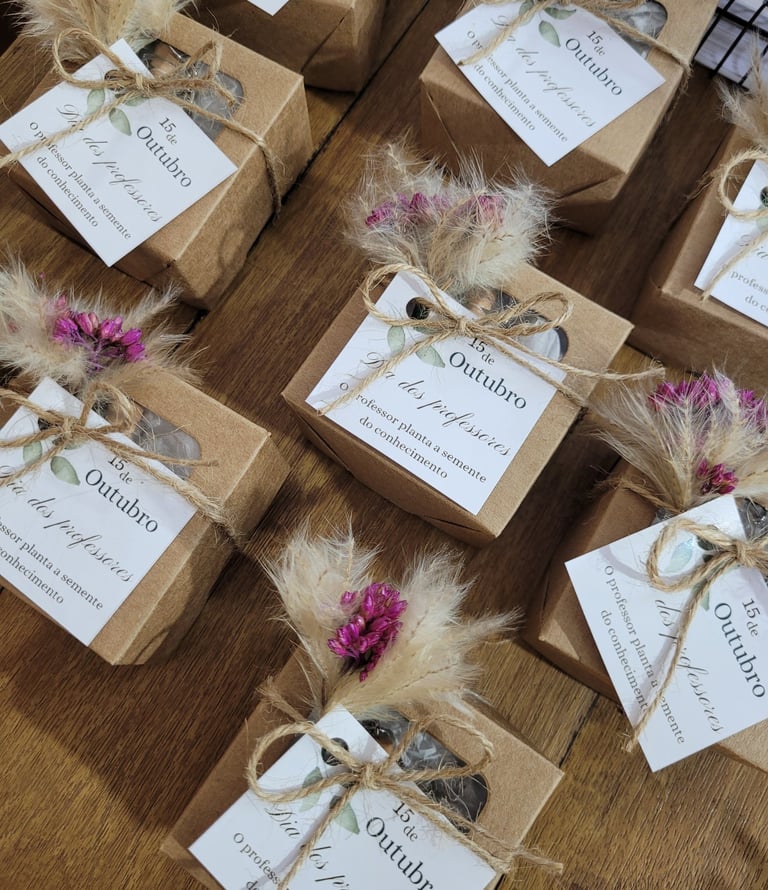 Várias opções de formatos e tamanhos. E você pode escolher também a decoração da embalagem e incluir uma tag personalizada.