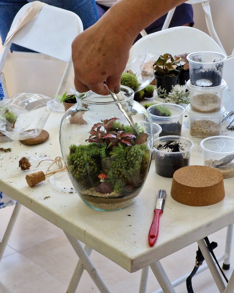 Compartilhamos em nossas aulas nosso conhecimento adquirido ao longo destes 12 anos de experiência. Nelas, cada participante monta seu próprio terrário com a instrução da equipe Terrariando, além de aprender sobre o universo desta arte botânica, dicas de cultivo, espécies adequadas, materiais e fornecedores.